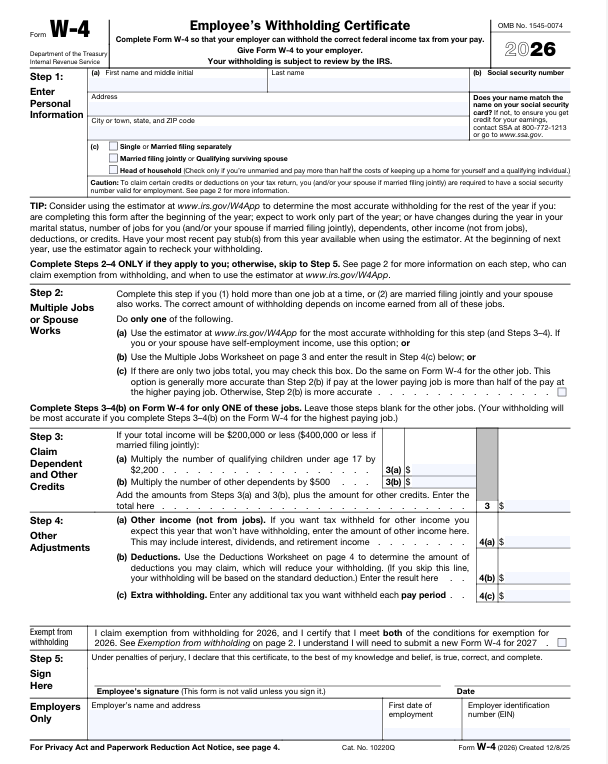 Form W-4: Employee’s Withholding Certificate
